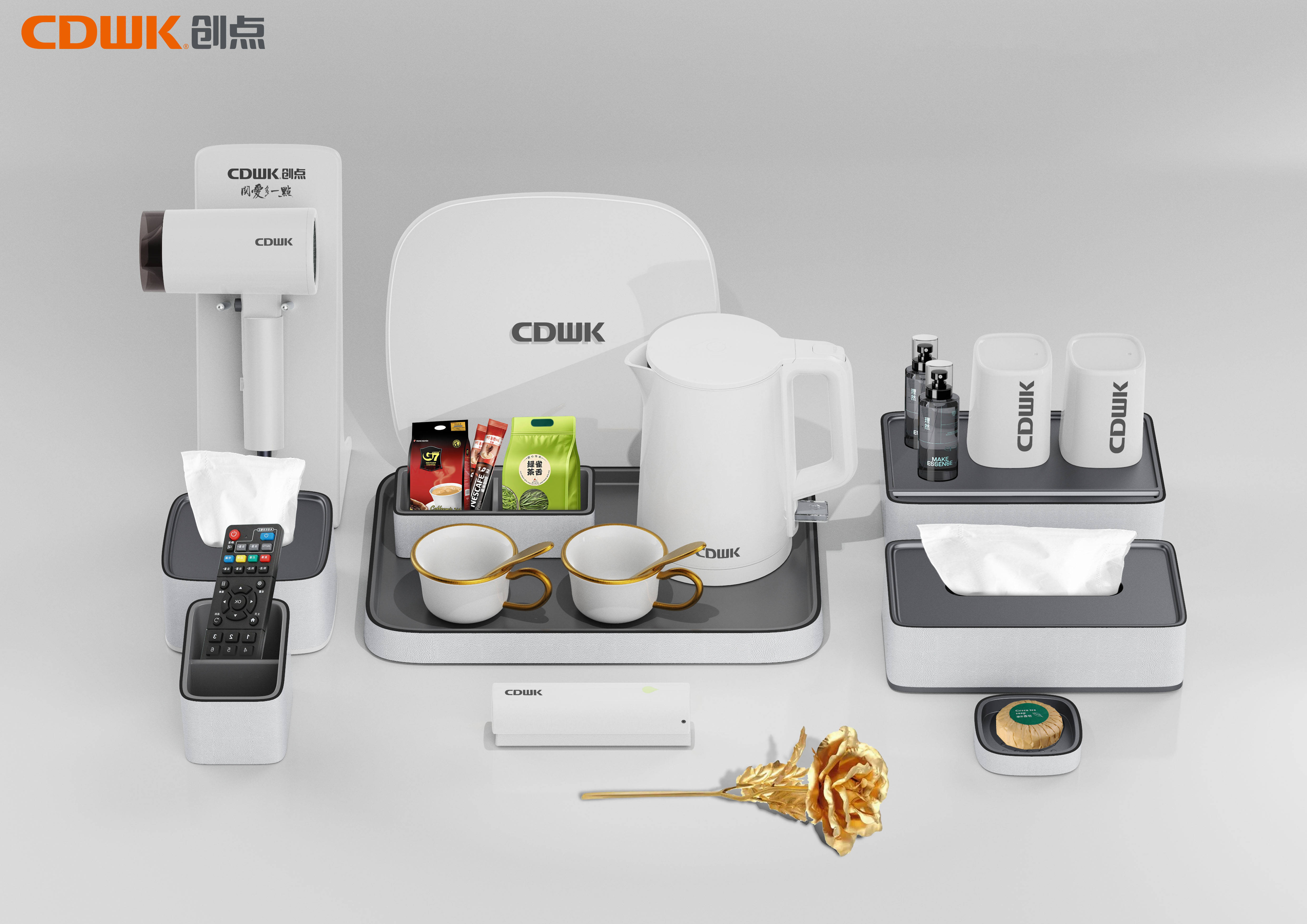 CDWK創(chuàng)點為全國各地品質(zhì)酒店提供全方位的客房用品解決方案,用技術(shù)創(chuàng)新打造舒適體驗。CDWK創(chuàng)點酒店整體解決方案一應俱全,包括酒店皂液器、吹風機、感應垃圾桶、紙巾盒、收納盒、咖啡機、電子秤、熱水壺、托盤、茶具等產(chǎn)品,具有現(xiàn)代感的無縫功能性設計,堅固耐用,外觀既圓潤不易傷手,也包容性極強,易于融入酒店客房內(nèi)部環(huán)境,巧妙匹配安全的需求。