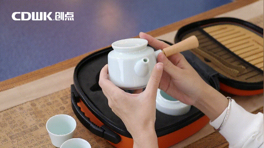 CDWK創點CD-7018 創意輕奢級便捷包,有儀式感又不占地,配置一壺三杯一罐一盤,手感圓潤輕滑,色彩淡雅溫潤如玉,內里珍珠棉包裹茶器,固定卡位不怕磕碰,防震耐壓,拉鏈開合,即提即走!